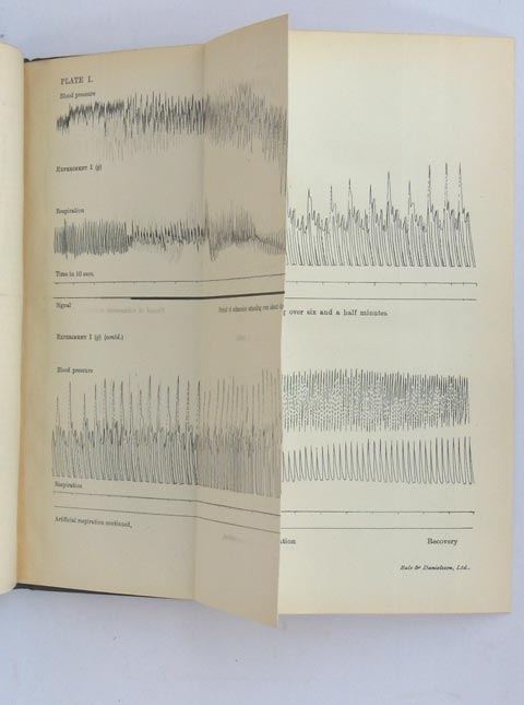 Description: 81p plus 20 fold out plates, green cloth with gilt lettering, physiological laboratory embossed and gilt to front board, this copy from a Cambridge college library with 3 small labels on spine and stamp and ink marks to endpaper, pages unmarked, binding firm, excellent copy
