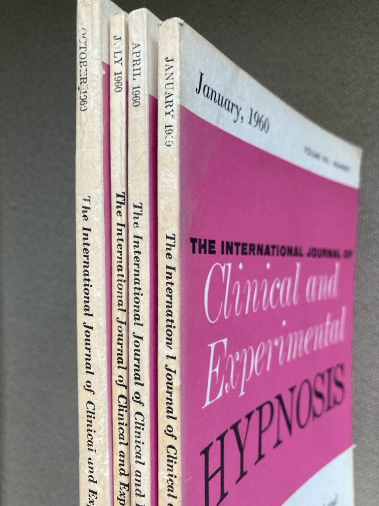 Description: set of four issues of the journal, red cover, together 280p, text clean, nice set, many essays on all aspets of Hypnosis etc