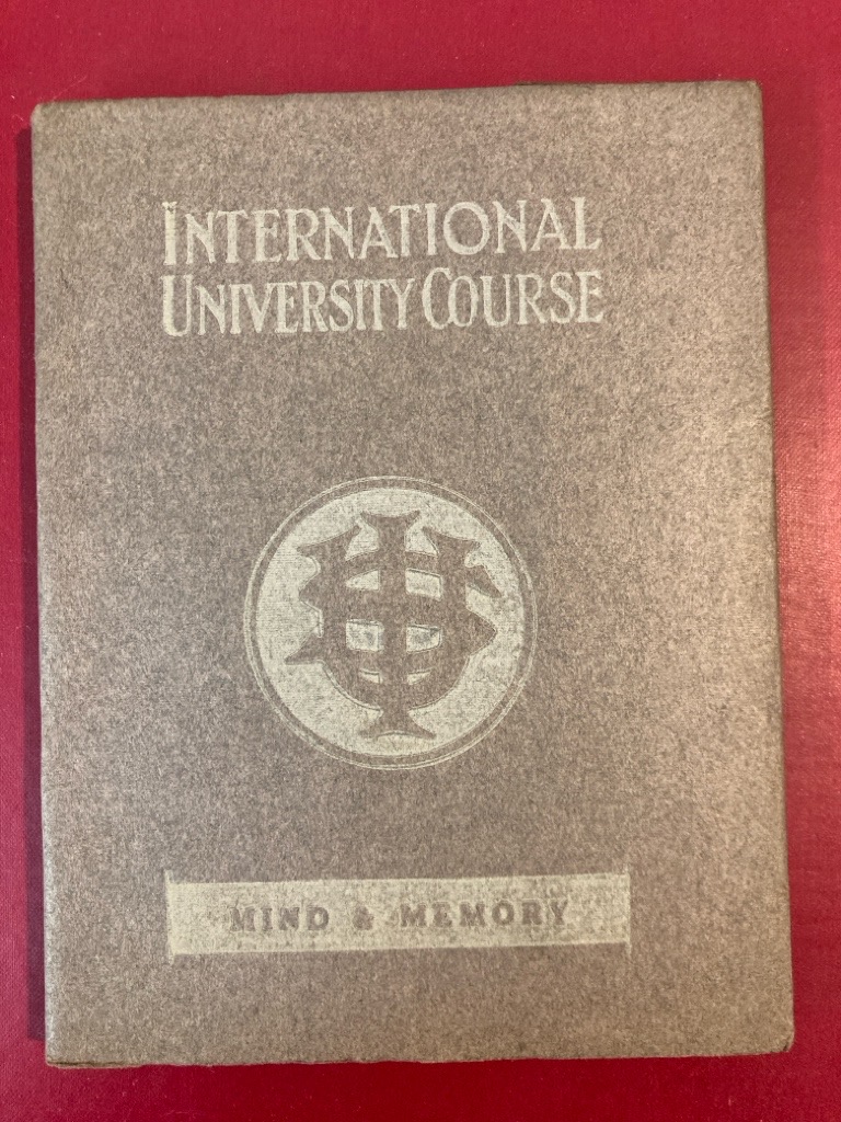 Description: this is a 28p booklet, brown card cover, advertising the Mind and Memory course of the IUS, for which Hobbes is listed as the sponsor. Text concludes with exam questions. Brown card cover, well printed, uncommon