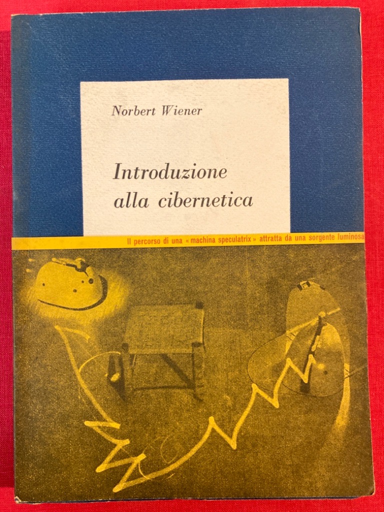 Description: 233p large format paperback with dark blue frame design to cover, publisher's scheda bibliografica present, also publisher's advertising band ("Il percorso di una 'machina speculatrix' attratta da un sorgente luminosa"), this copy entirely un-cut, never read, without names or stamps, the best copy the discerning Wiener collector could find, 1958 reprinting
