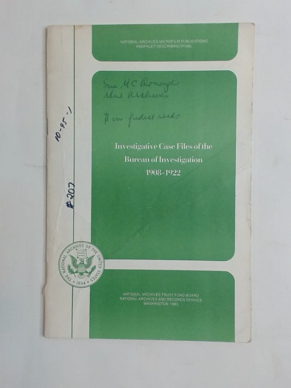 Investigative Case Files of the Bureau of Investigation 1908 - 1922.