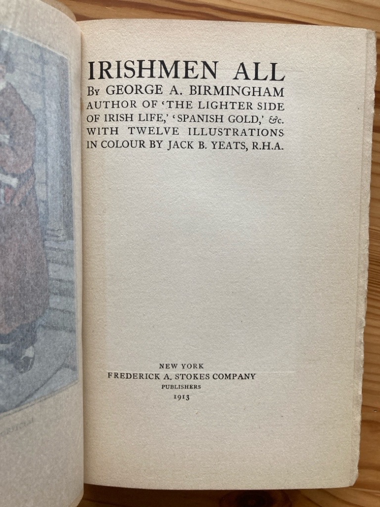 Description: 225p original olive green cloth fresh and tight, gilt lettering to front fresh, spine tight, corners sharp, hinges firm, lettering to spine a hint dull, 12 colour plates by Jack Yeats tipped in, tissue-guard, name in faint pencil to endpaper, first US edition, excellent copy
