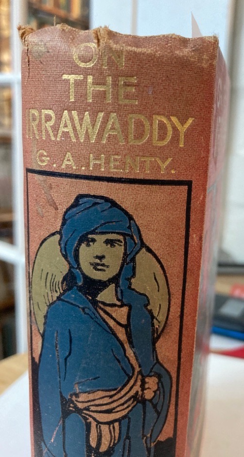 Description: 352p red illustrated cloth with boating scene to front, male figure with turban to spine and gilt lettering to spine, illustrations, one inner hinge stressed
