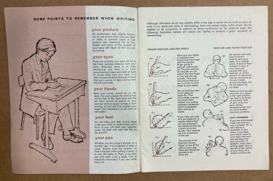 Description: 20p stapled booklet, very good condition, terracotta cover and clean white pages, diagrams and handwriting examples throughout, a rare school copy book