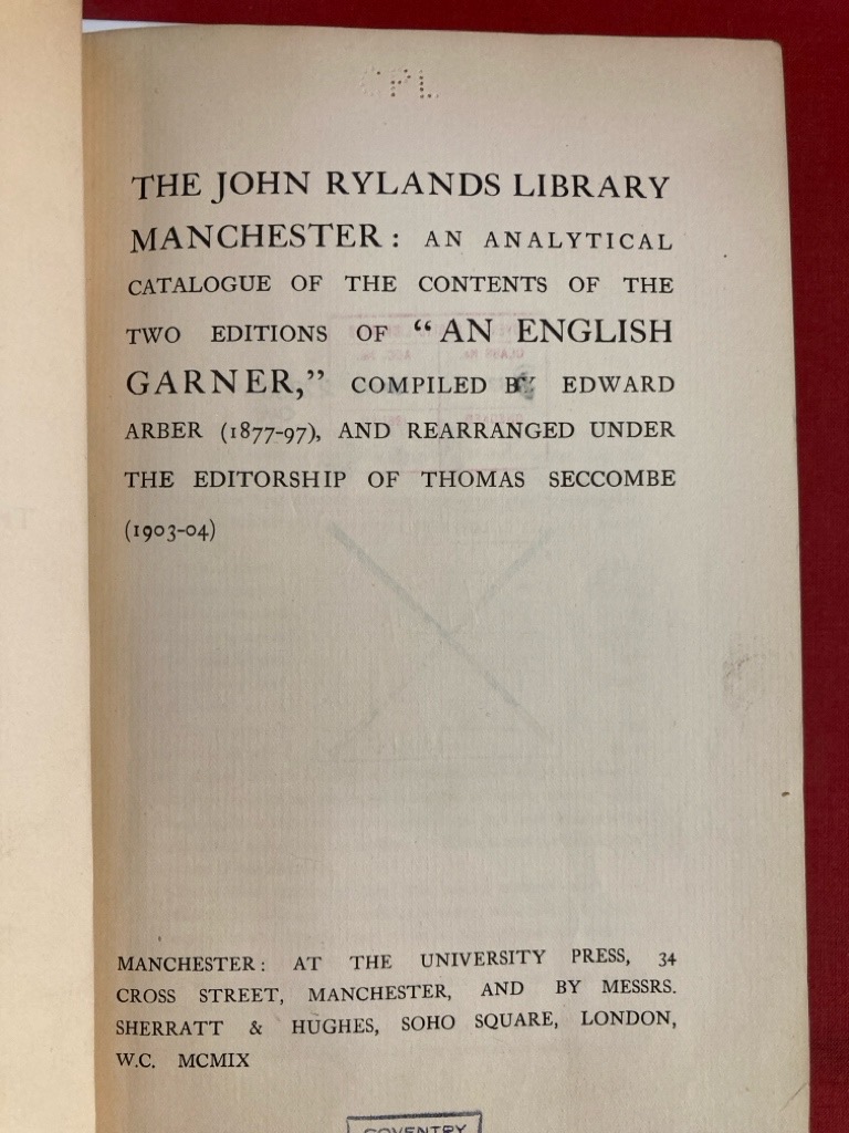 Description: 221p brown cloth, library binding, from a Cambridge college library, very good