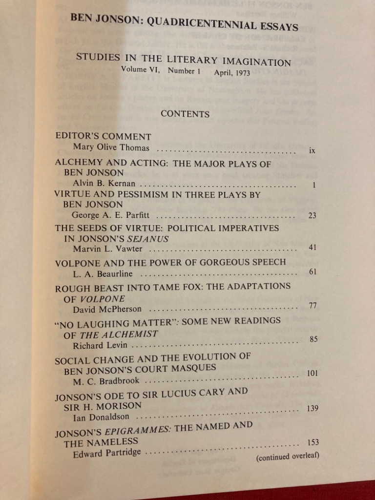 Description: xi 271p original paper cover, fresh and clean: Kernan, Parfitrt, Vawter, Beaurline, Richard Levin, Bradbrook, Donaldson etc: as new, and interesting collection of essays