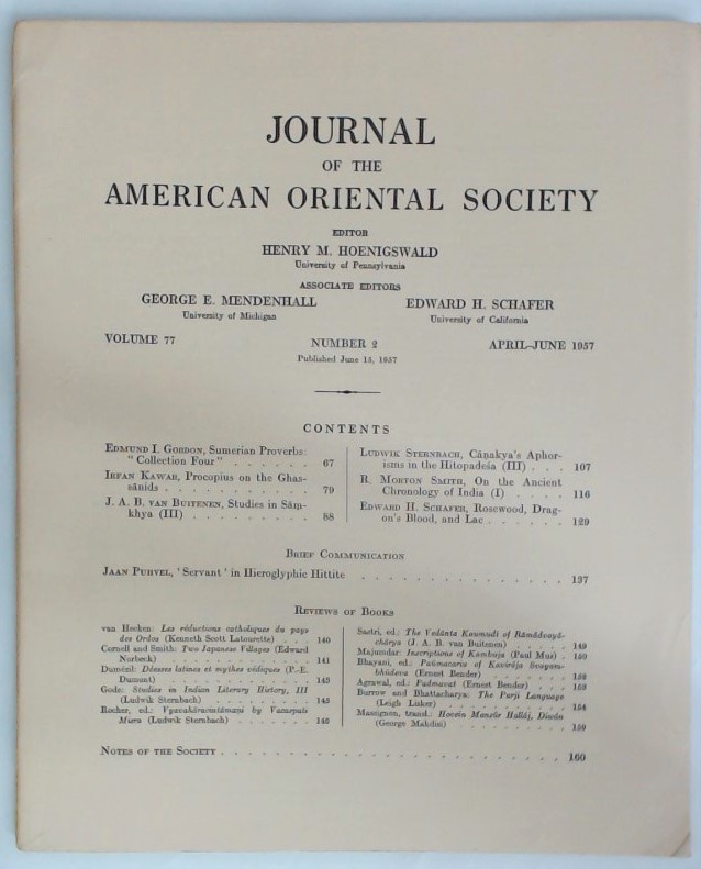 Description: 67-160p paperback journal, beige cover, very good condition, minimal wear, binding intact, text and photographs clear and bright, a very good copy; includes essays on Sumerian proverbs and the ancient chronology of India