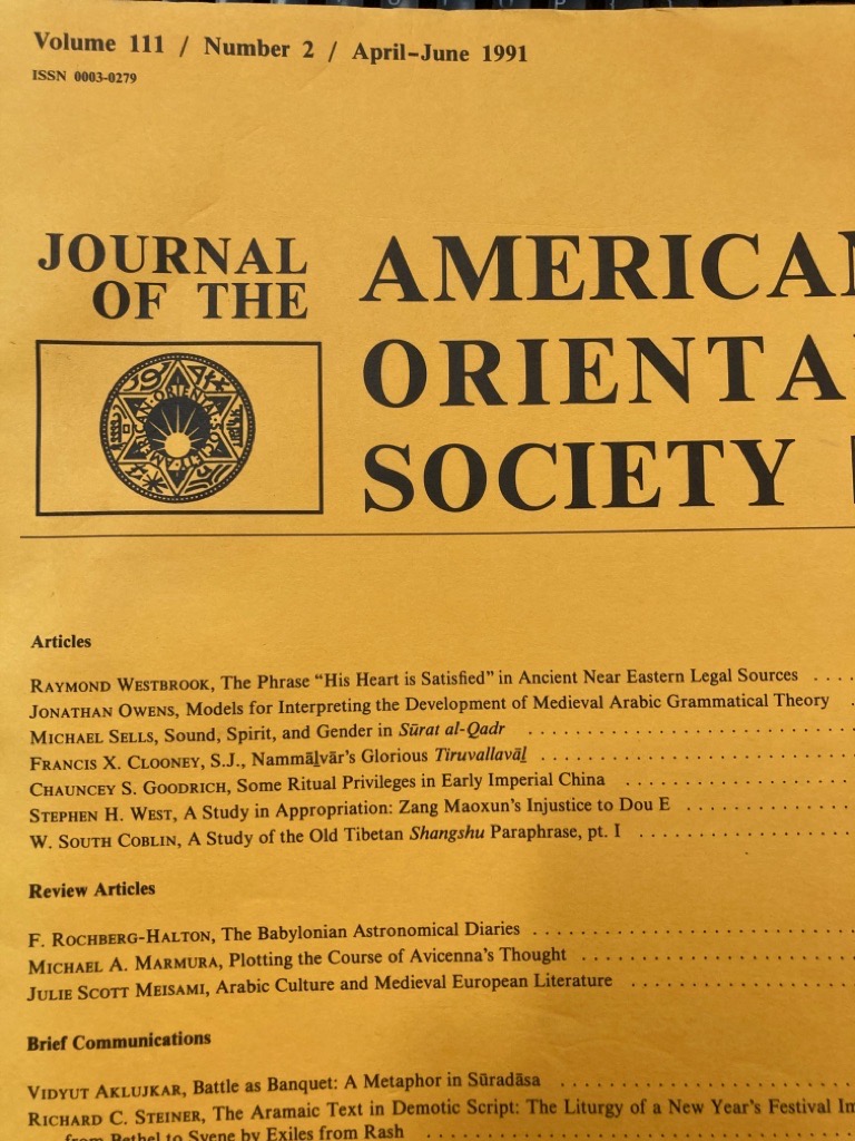 Description: approx 200p paperback journal, bright yellow cover, very good condition, minimal wear, binding intact, pages clean and bright, a very good copy: His Heart is Satisfied in Early Eastern Legal Sources; Medieval Arabic Grammatical Theory; Sound Spirit Gender; Ritual Privileges in Early Imperial China; Zang Maoxun's Injustice to Dou E; eetc