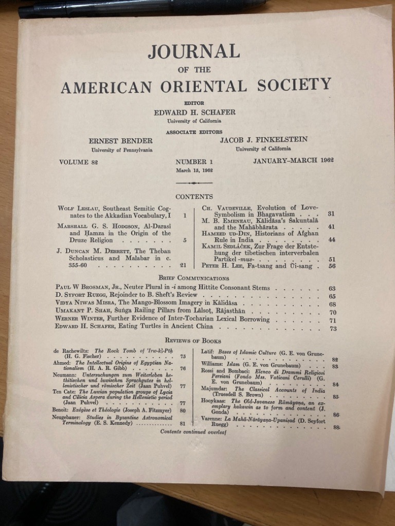 Description: approx 120p paperback journal, large format, beige cover, very good condition, minimal wear, binding intact, pages clean and bright, a very good copy: Origins of Druze Religion; Theban Scholasticus and Malabar; etc