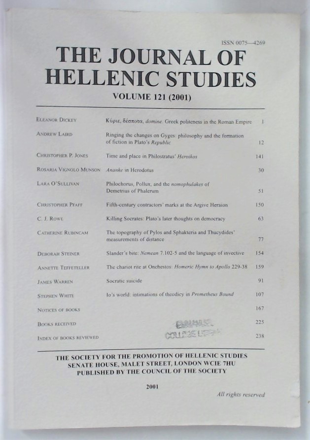 Publisher: London: The Society for the Promotion of Hellenic Studies 2001. (The Journal of Hellenic Studies)