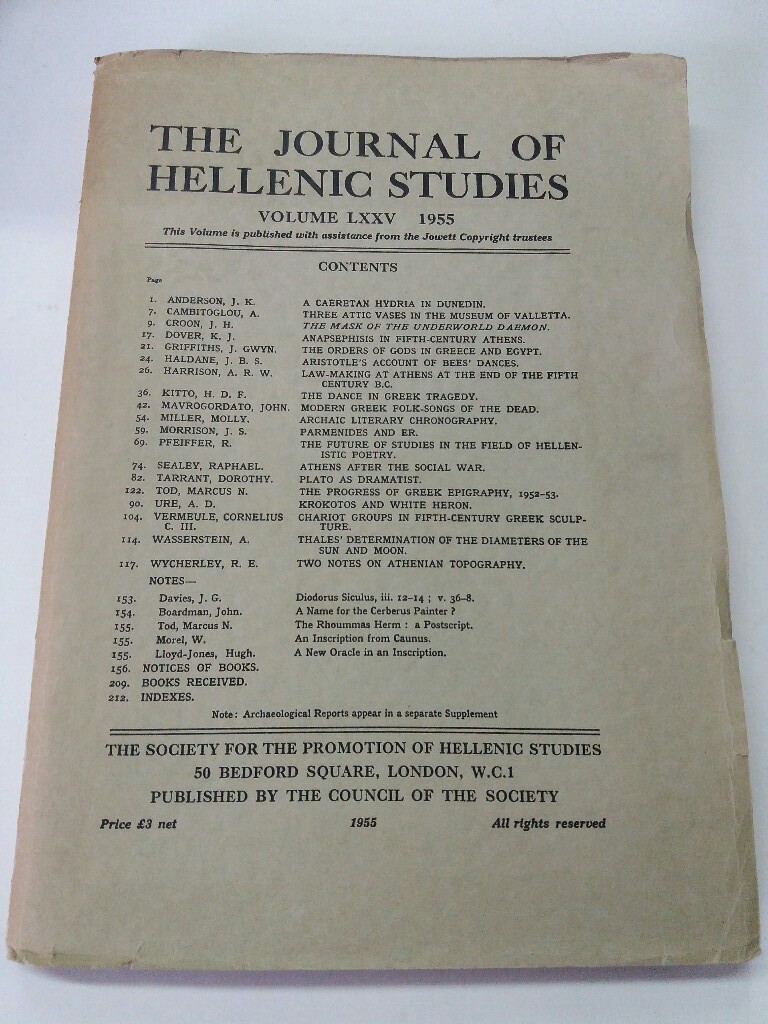 Publisher: London: The Society for the Promotion of Hellenic Studies 1955. (The Journal of Hellenic Studies)