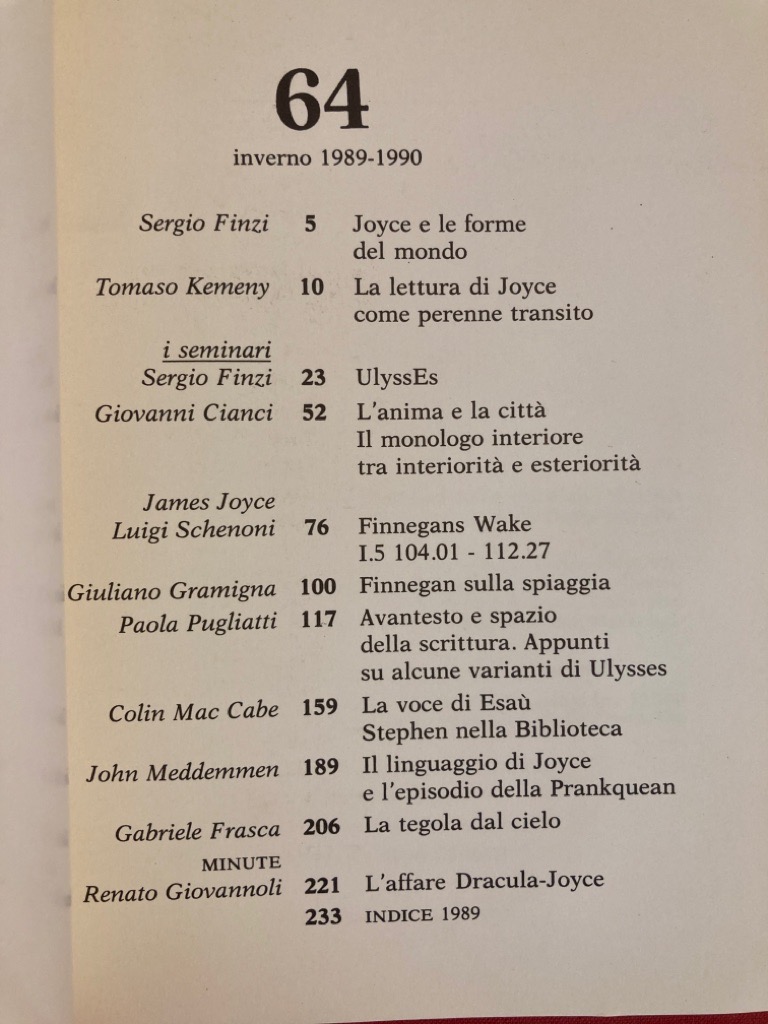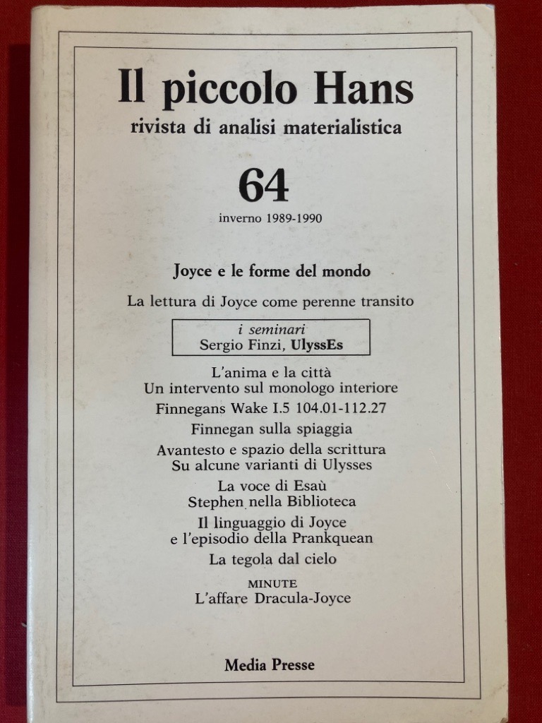 Description: 238p large paperback, white cover with black lettering, special issue of this hournal devoted to Joyce, Ulysses, Finngans Wake, etc, includes an essay on L'affare Dracula-Joyce.