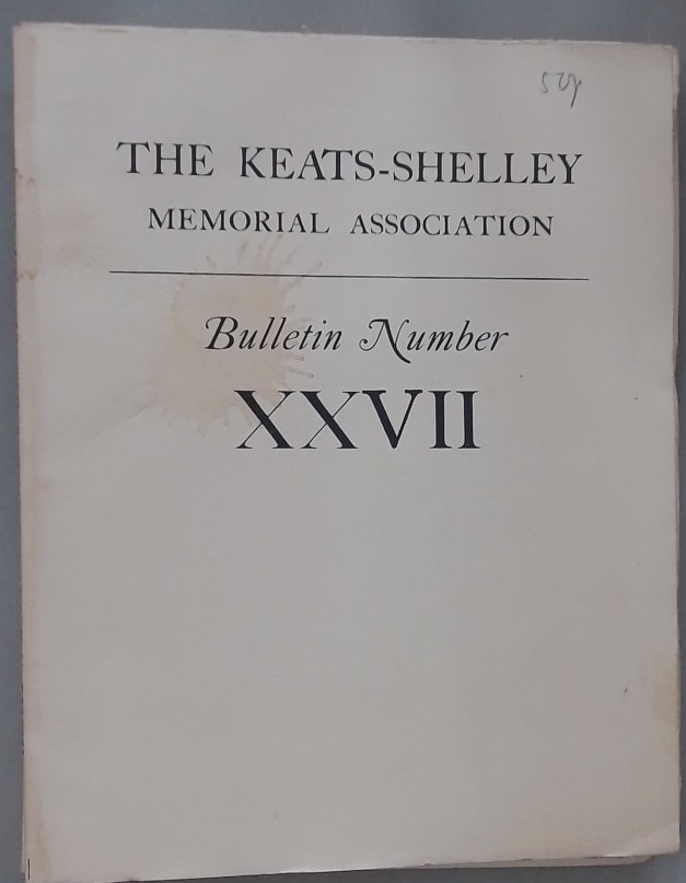 Publisher: London: Keats - Shelley Memorial Association 1976.