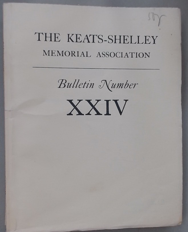 Publisher: London: Keats - Shelley Memorial Association 1973.