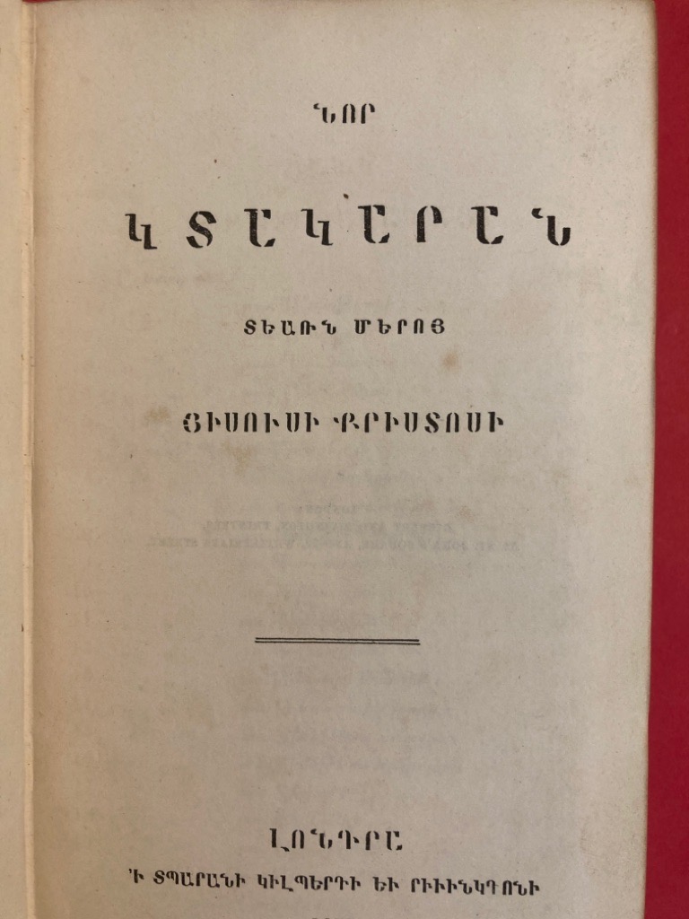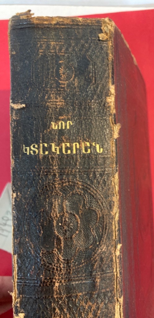 Description: 708p original black blindstamped calf, gilt lettering to spine, front hinge worn, text clean and firm, old decorative library bookplate, pencil note "Ancient Armenian Testament", title transcription according to Worldcat, where a London imprint is not listed