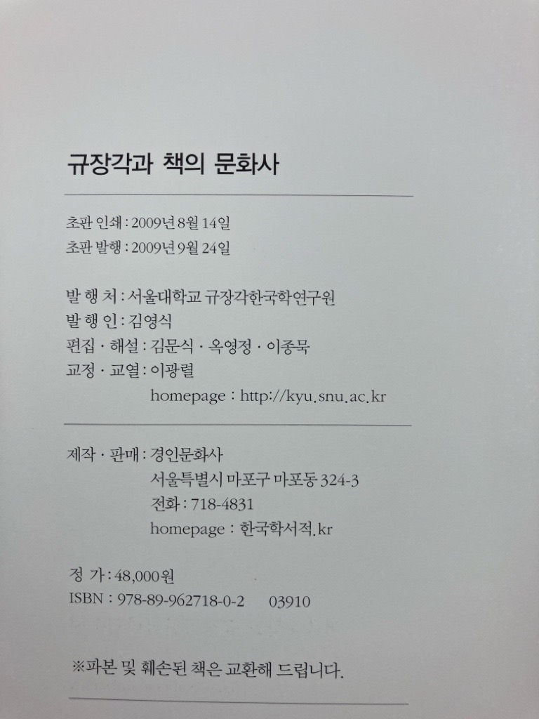 Publisher: Seoul: Kyujanggak Institute for Korean Studies 2009.