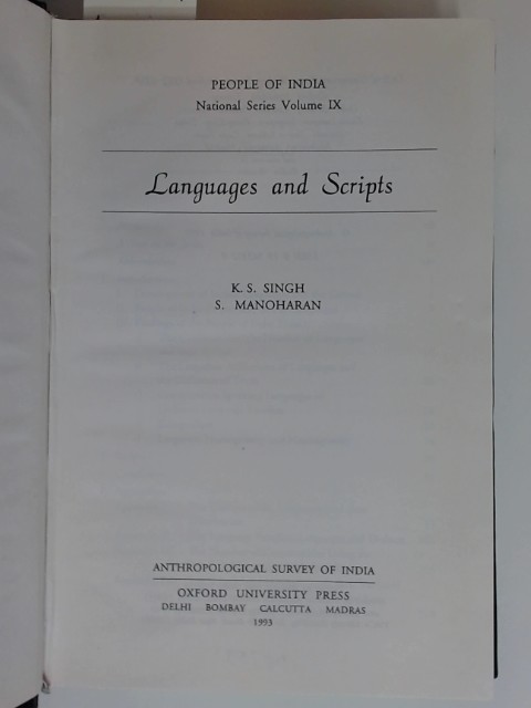 Publisher: Delhi: Oxford University Press 1993. (People of India)