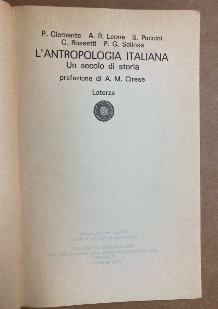 This book has been catalogued with the following subject terms: Anthropology, Italy