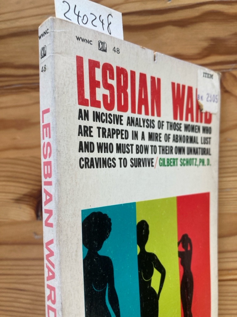 Description: 150p period paperback with red lettering, a tight and clean copy, spine not creased, no names or stamps, top edge marked by a thin cut not affecting text, price sticker, in the back a 12p catalogue of related publications from Connoisseur Publications: "An incisive analysis of those women who are trapped in a mire of abnormal lust and who must bow to their own unnatural cravings to survive" (cover text)
