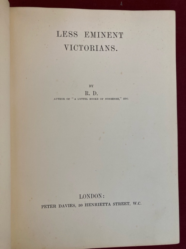 Description: approx 60p of limericks with Victorian style illustrations, terracotta cloth solid, large format, first edition, from the library of Andrew Huxley, Nobel Laureate, with various correspondence inserted involving the librarian of Chatsworth House et al