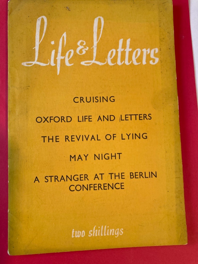 Description: approx 120p well preserved single issue of journal, yellow cover, still well preserved, perhaps edited by Robert Ellis: Haynes: Cruising, Oxford Life and Letters, The Revival of Lying, A Stranger at the Berlin Conference