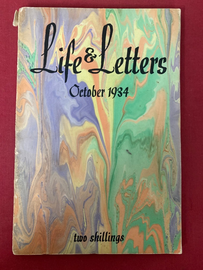 Description: approx 120p well preserved single issue of journal with bright marbled paper cover, contributions by Mary Butts (A Lover), Julian Huxley (Applied Science), Michael Sadler (Roger Fry), also includes preface by Robert Ellis, the new editor etc