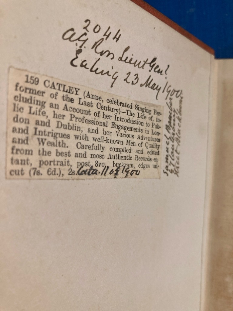 Description: 78p red buckram a little dusty, frontispiece portrait of Miss Catley, edges un-cut, bookseller note to endpaper, first edition, very good