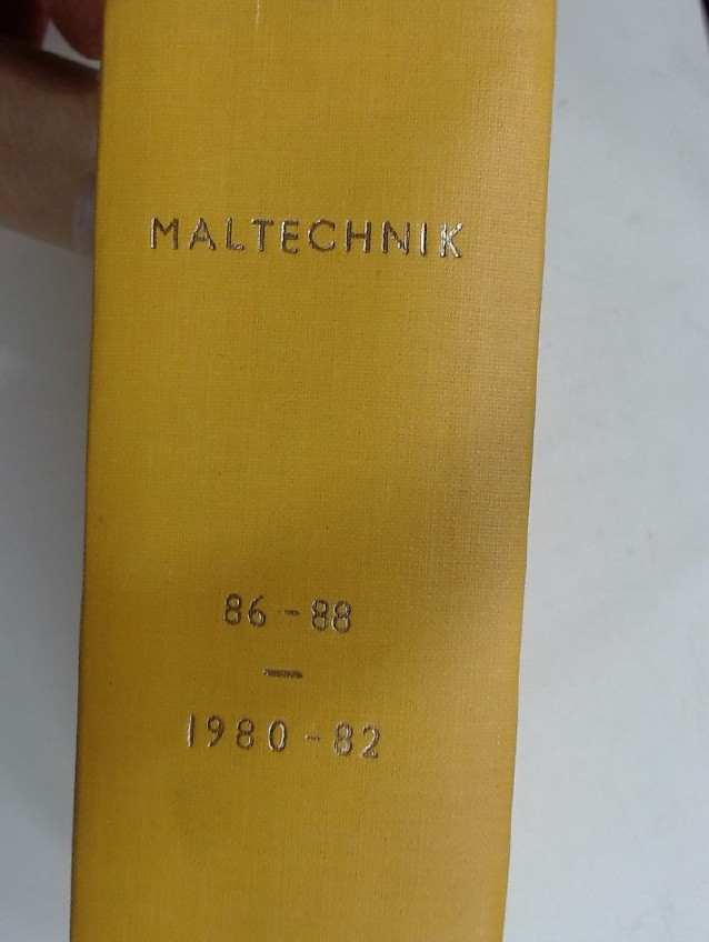 Description: for sale are four large bound volumes of Maltechnik containing the issues which make up volumes 83 - 93, covering the years between 1977 and 1987. They are bound in bright yellow cloth, including the adverts, from a private library with a decorative bookplate
