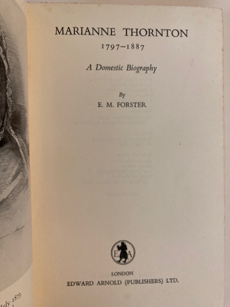 Description: 301p blue cloth fresh but impact dent / hurt to spine, frontispiece, plates, index, first edition of Forster's biography of his great aunt