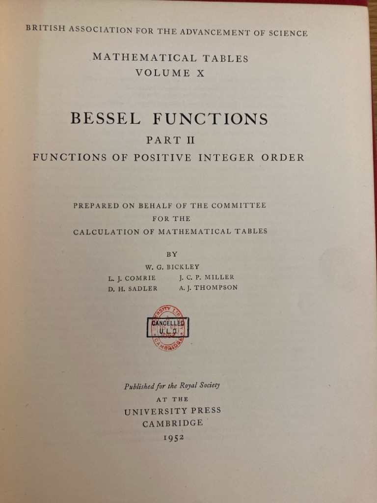 Publisher: Cambridge University Press 1952. (British Association Mathematical Tables.)