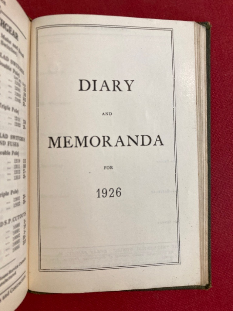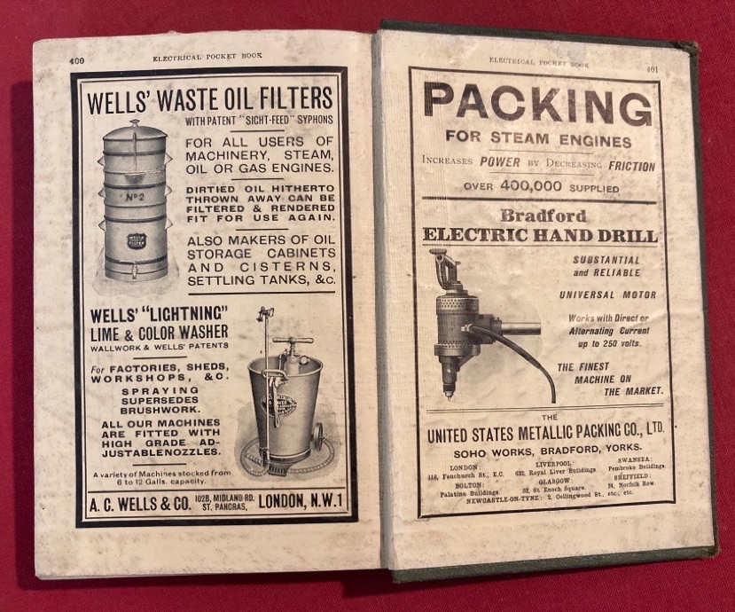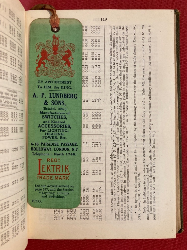Description: 338p green cloth hardback + "Diary and Memorandum" and beautifully illustrated advertisements, advertisement bookmark for A.P. Lundberg & Sons, "Lektrik" present and bound to spine, covers display light wear, binding tight, hinges tight, pages clean and bright, last page of diary in marked in pencil, otherwise an excellent copy, very good condition