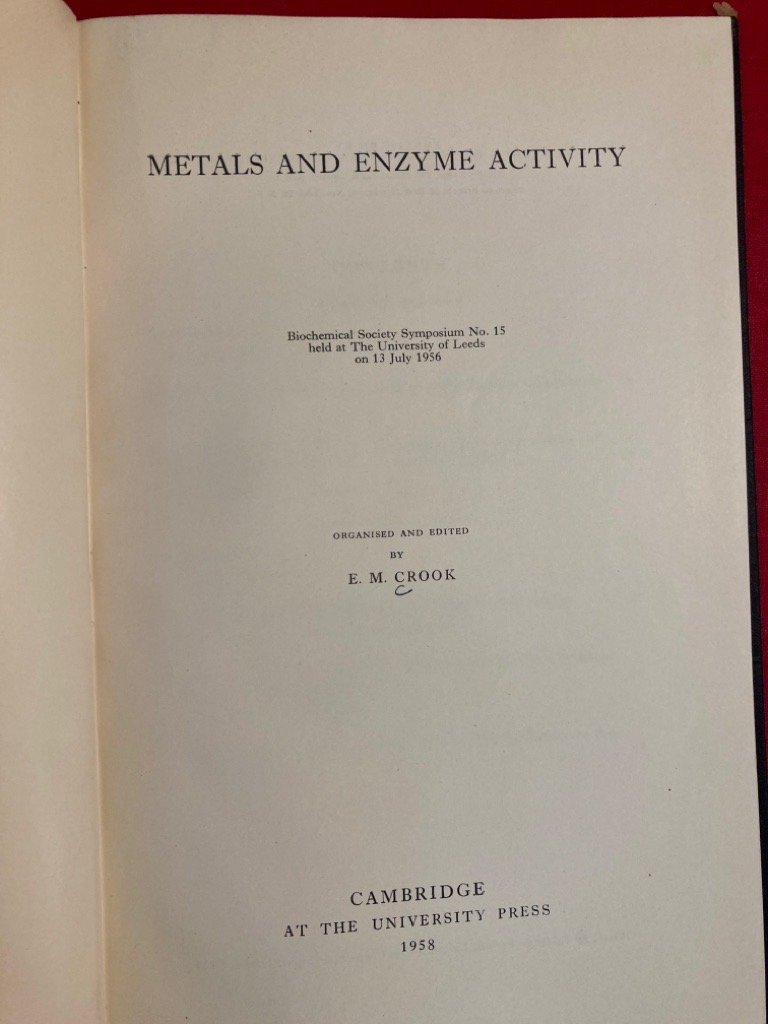 Description: 102p large blue cloth, contributors include R S Nyholm, L E Orgel, Adrien Albert, B R Rabin, F Bergel, E C Slater, etc, with illustrations, a clean copy, from a Cambridge college library