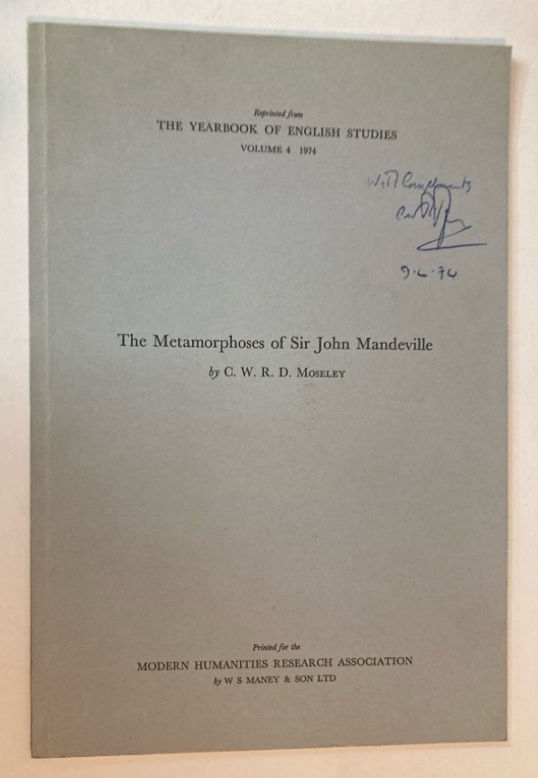 Description: 24p offprint in grey card cover, no noticeable wear, tight binding, pages like new, author's compliments to cover, a very good copy, from Yearbook of English Studies