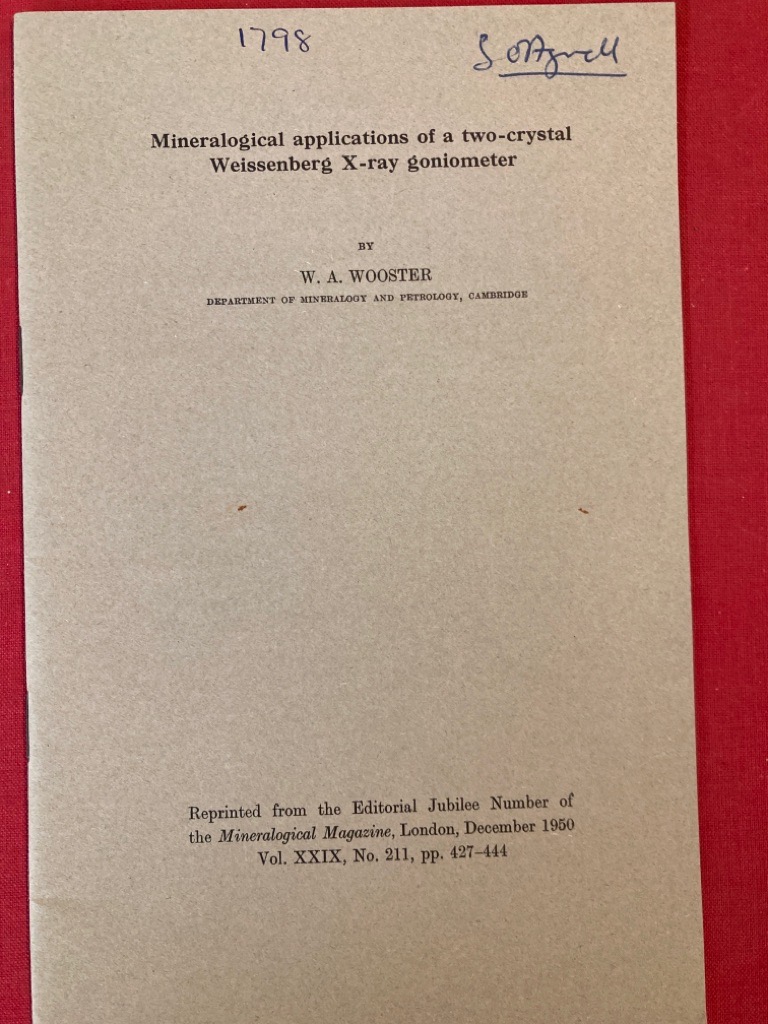 Mineralogical Applications of a Two-Crystal Weissenberg X-Ray Goniometer.