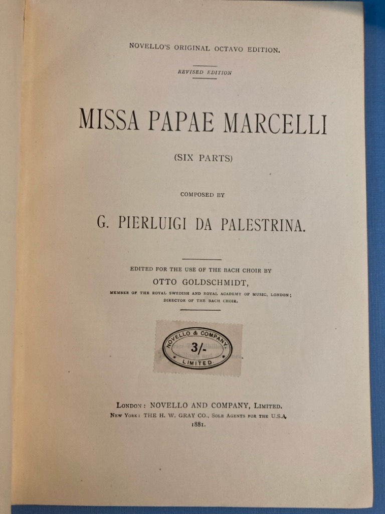 Publisher: London: Novello 1881. (Novello's Original Octavo Edition.)