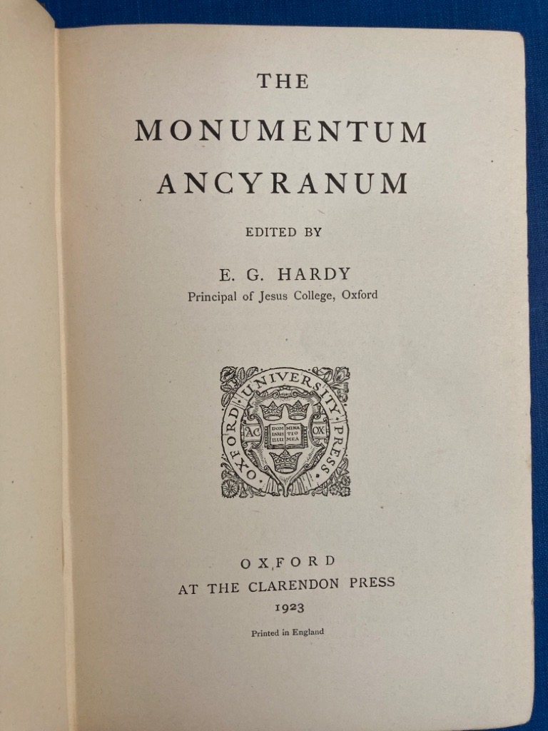 Publisher: Oxford: Clarendon Press 1923.