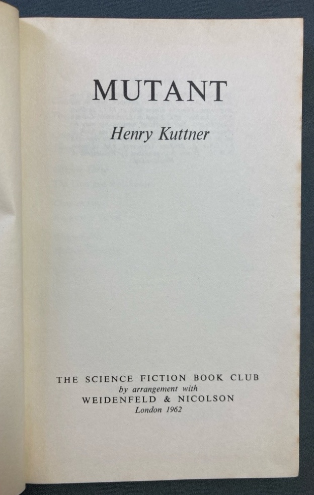 Publisher: London: Weidenfeld & Nicholson 1962. (The Science Fiction Book Club.)