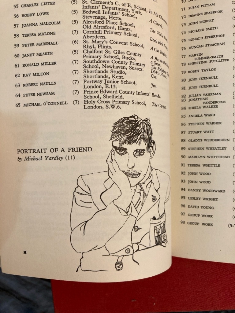 Description: 28p stapled booklet, with illustrations and four colour plates, mauve cover, lists many junior artists, first edition