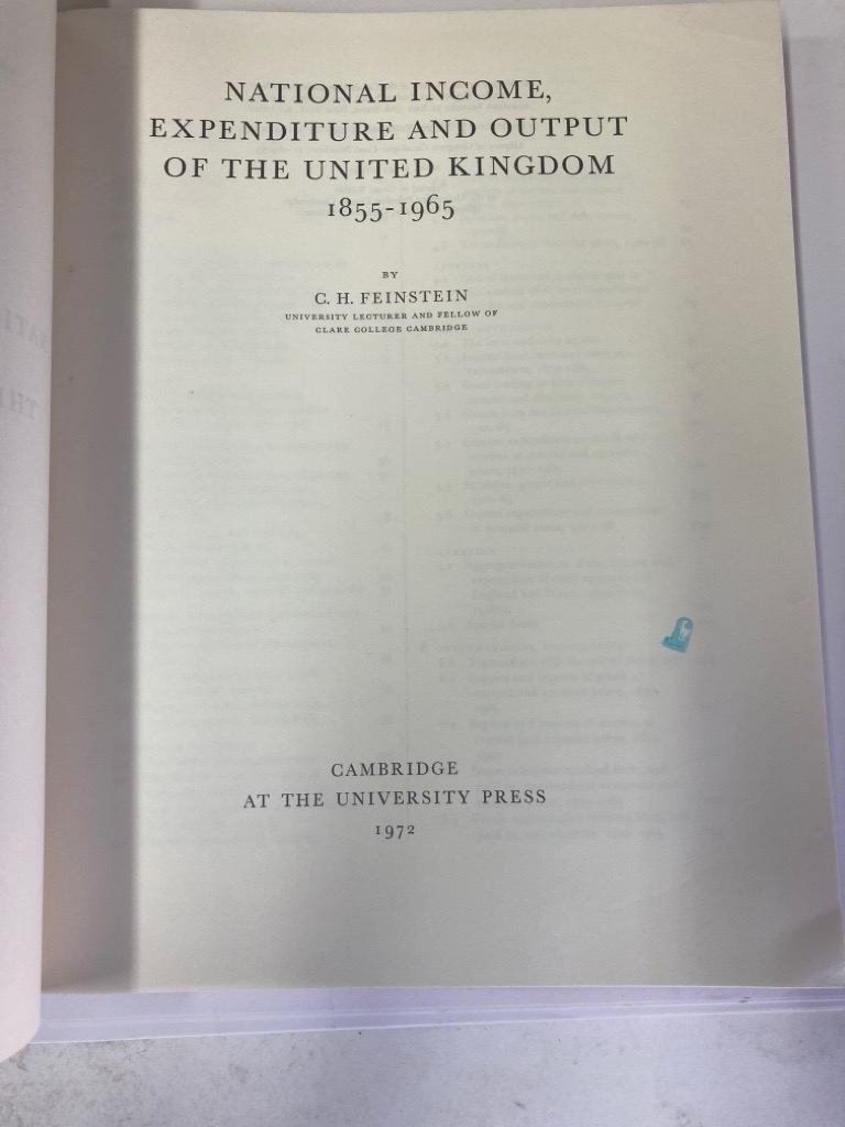 Publisher: Cambridge University Press 1972. (Studies in the National Income and Expenditure of the United Kingdom 6)