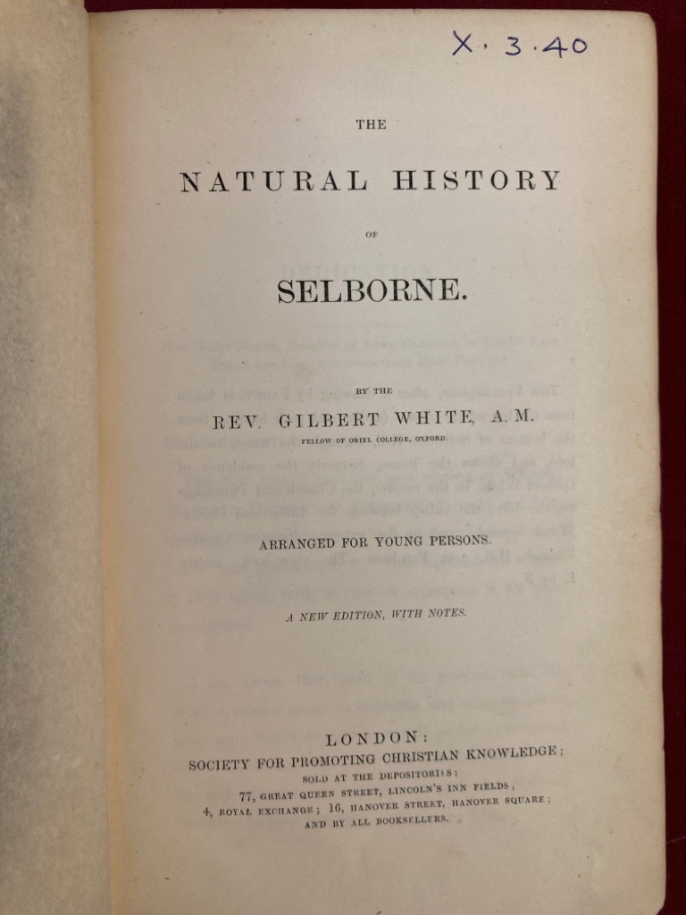 Description: 338p blue cloth bound with blindstamped cover, spine torn but binding still solid, top of spine missing, illustrations throughout the text including tissue covered frontispiece of Selborne by Fahey, a well preserved copy with markings from a Cambridge college library