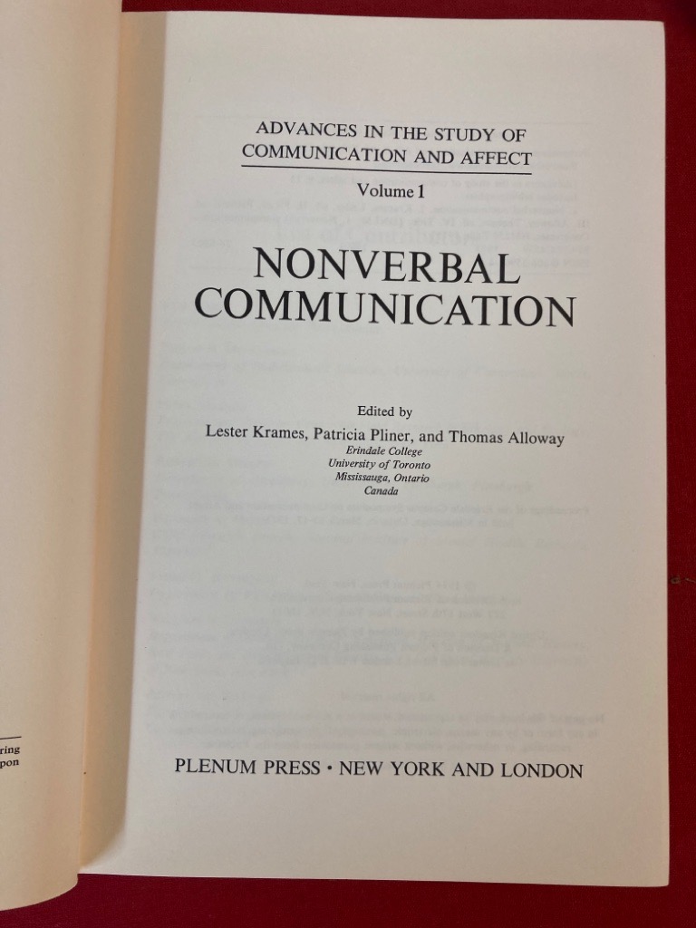 Publisher: New York: Plenum 1974. (Advances in the Study of Communication and Affect.)
