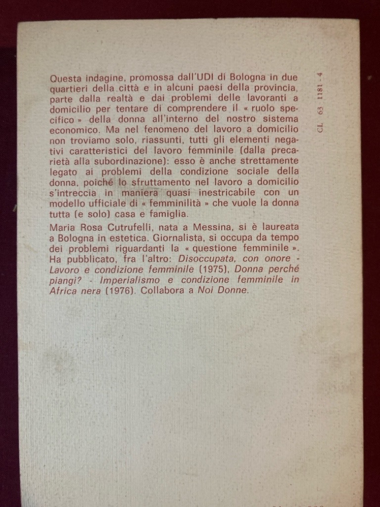 Publisher: Roma: Editori Riuniti 1977. (La Questione Femminile.)