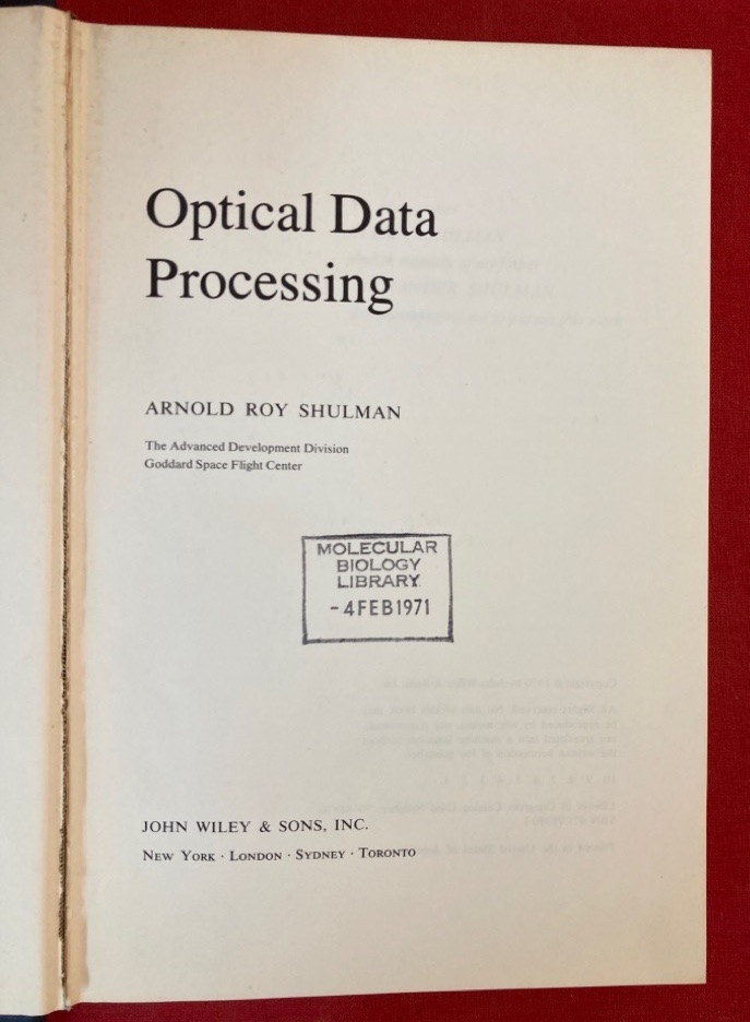 Publisher: New York: Wiley 1970. (Wiley Series in Pure and Applied Optics.)