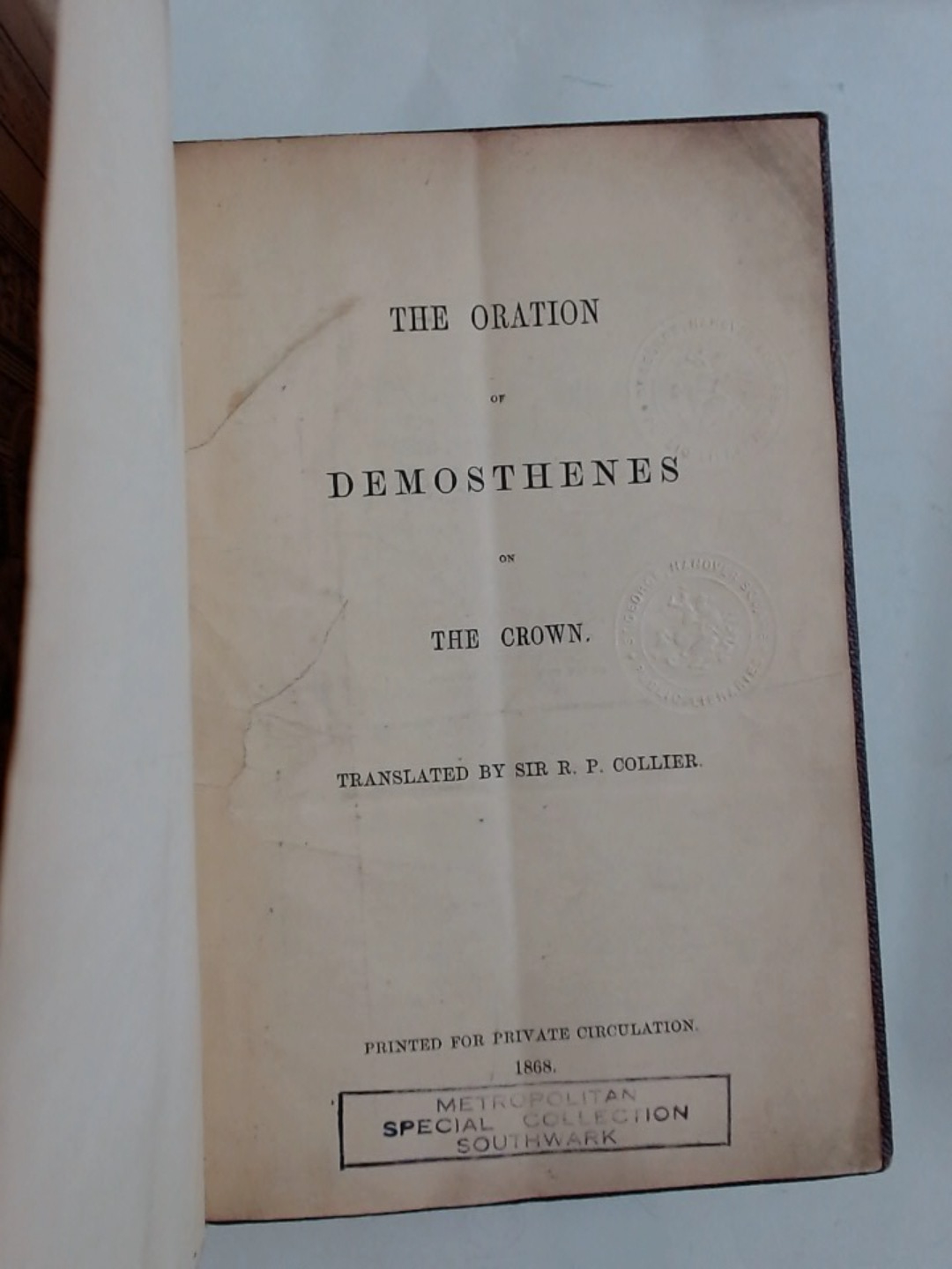 Description: 68p library rebound in old full burgundy cloth with lettering to spine, library markings from Hanover Sq and Westminster Public Libraries, slight hurt to title page, text clean, a very uncommon title, the author is Robert Porrett Collier, later Baron Monkswell