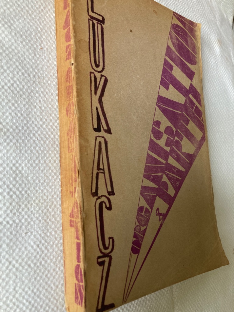 Description: approx 200p paperback, no imprint, front and spine spells author as Lukacz, text reprints a variety of texts as facsimile, text with some ink markings and underlining, striking cover design with purple lettering to front and back (the back cover lists the assembled essays in a table of contents), the edges of this volume have also been coloured in purple, which is still bright and an interesting feature of this Raubdruck
