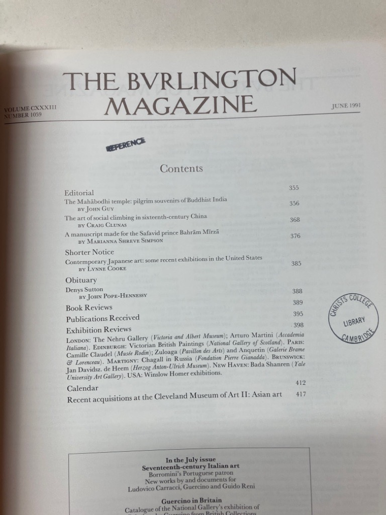 Publisher: London: Burlington Magazine 1991.