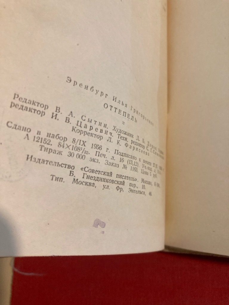 Publisher: Moscow: Sovetskii Pisatel 1956.