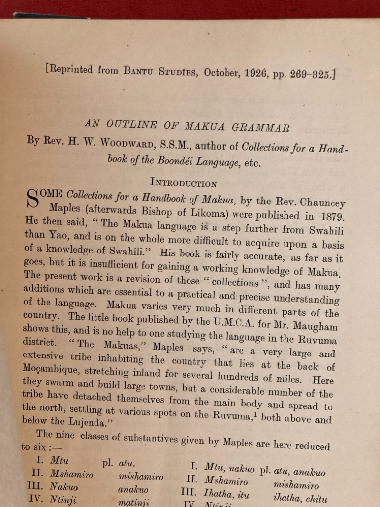 Description: 56p offprint, inserted related material (MS word list entitled "Luganda"), very good