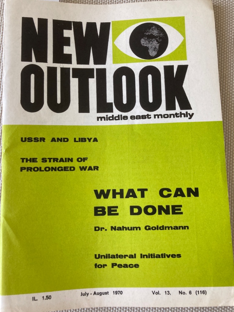 Description: 81p stapled magazine with green cover, a fresh and clean copy, very good indeed: William Evan: Unilateral Initiatives for Peace; Yochanan Peres: Peace and Security; Nahum Goldman: Israeli Foreign Policy 2: What Can be Done?; USSR and Libya; Soviet in Egypt; Reflections on the Brink of Tragedy (Pierre Vidal-Naquet), etc