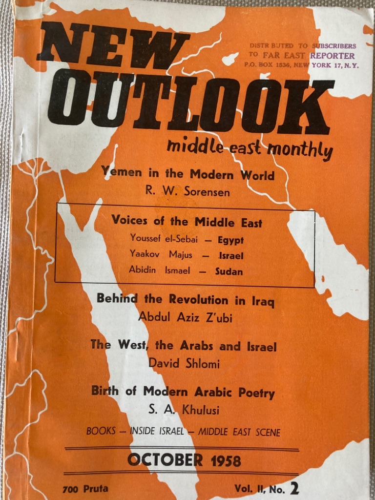 Description: 64p magazine with orange cover, fresh and clean copy, very good indeed: Yemen in the Modern World (R W Sorensen), Behind the Revolution in Iraq (Abdul Aziz Z'ubi), The West, the Arabs and Israel (David Shlomi), The Birth of Modern Arabic Poetry (S A Khulusi), etc